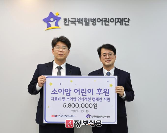 ![]() 한국도로공사서비스, 한국백혈병어린이재단에 소아암 긴급 치료비 후원 |