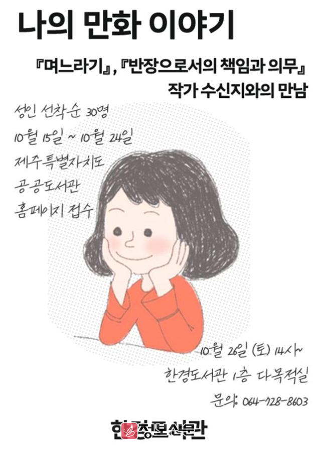 ![]() 제주시 한경도서관, 수신지 작가의 <나의 만화 이야기> 강연 개최 |
