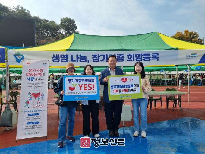 ![]() 여수시보건소는 지난 15일 여수시민의 날을 맞이하여 열린 기념행사에서 생명나눔 문화 활성화를 위한 ‘장기기증 희망등록’ 캠페인을 실시했다. |