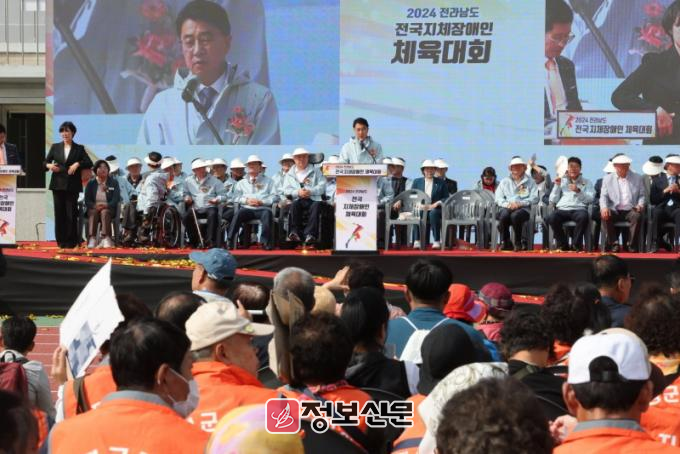 전국 17개 시도에서 6,000여 명이 참여한 이번 전국지체장애인 체육대회에는 기수단 입장에 이어 유공자 표창, 선수 선서, 기념촬영 순으로 진행됐고 김영록 지사와 전남도의회 박문옥 의회운영위원장 등이 함께 참석해 대회를 축하했다.