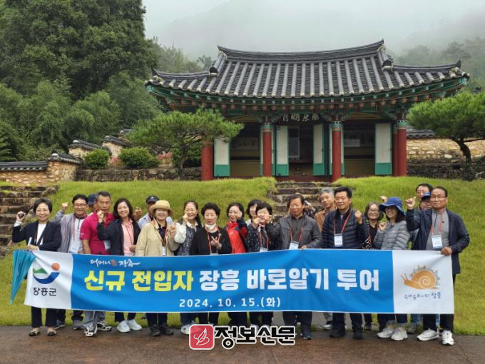 ‘신규 전입자 장흥 바로알기 투어’는 관내 명소 탐방, 전입자 간 상호 정보 공유 등을 통해 신규 전입자의 장흥 정착을 돕고자 지난 2017년부터 추진해 온 시책다. 올해까지 7회에 걸쳐 전입자 180여 명이 참여했다.