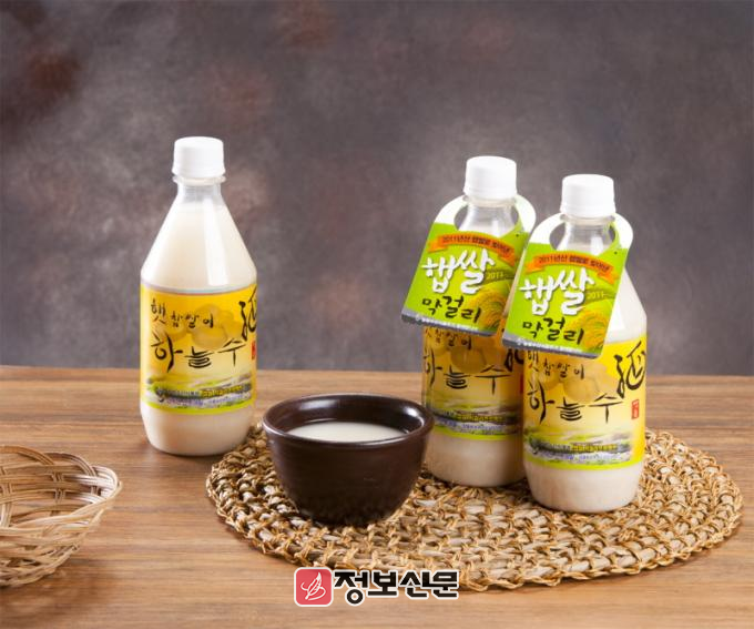 ‘햇찹쌀이 하늘수’는 쌀누룩을 사용하며, 그 쌀누룩을 찹쌀과 쌀이 들어간 술밥과 함께 저온발효 후 다시 한번 저온숙성해 만들어진다. 광산김씨 대대로 내려오는 가주를 빚는 방식을 고급화해 젊은 층을 겨냥한 막걸리다.