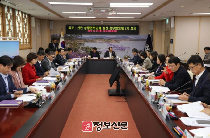 ‘목포·신안 상생협력과제 실천 실무협의체’는 신안군과 공동으로 추진하고 있는 ‘상생협력사업’을 위한 실무기구로, 이날 회의에는 양 시군 부단체장 및 관계부서 공무원 등 30여 명이 참석했다.