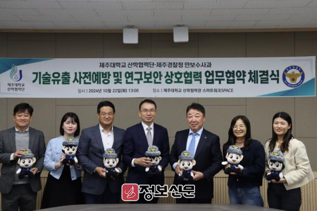 제주경찰청 안보수사과장은 이날 협약식에서 “기술 유출 예방과 수사의 중요성에 공감하고 정보 공유와 신속한 신고체계를 구축하게 됐다” “두 기관은 전문 인력 교류를 통해 제주 지역은 물론 국가 산업기술 보호에 총력을 다하겠다.”라고 전했다.