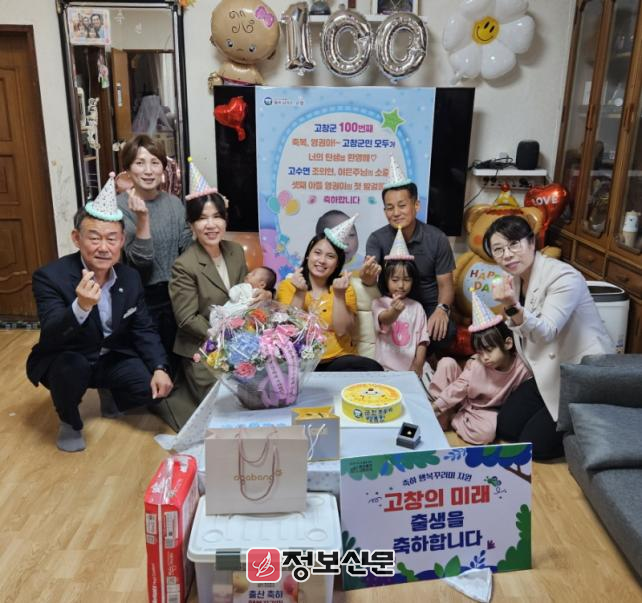 이번 경사의 주인공은 고수면에 거주하는 조의현·이은주씨 부부의 셋째 아이로 건강하게 태어났다. 세 아이의 부모가 된 조씨 부부는 “아이가 태어난 것만으로도 기쁜 일인데 고창군의 100번째라 더 뜻깊고, 많은 이들에게 축하를 받게 되어 기쁘다”고 말했다.
