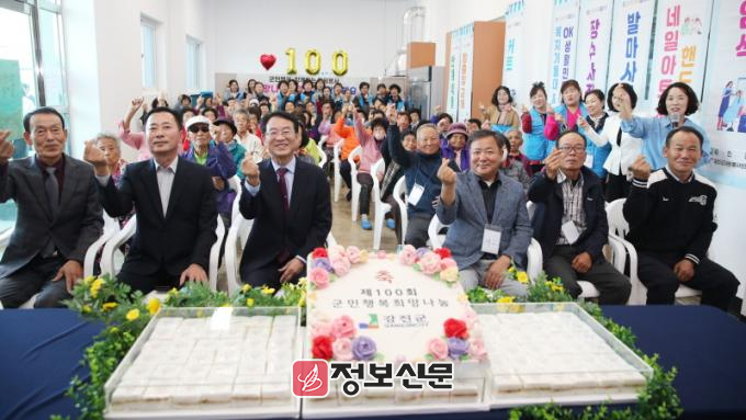 군민행복 희망나눔사업은 지난 2013년부터 이어온 역사 깊은 군민 중심의 봉사활동으로 다양한 분야의 민·관 봉사자들이 마을로 찾아가 주민들에게 통합 서비스 제공하는 사업이다. 이번 100회까지 총 293개의 마을 중 242개의 마을을 방문했다.