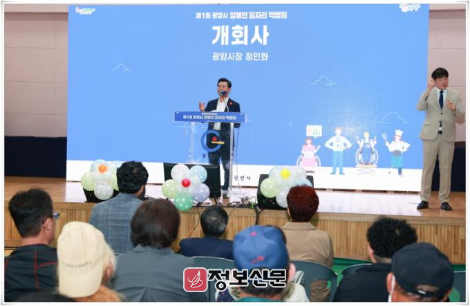 정인화 광양시장은 개회사를 통해 “개인은 직업을 통해 사회 구성원으로서의 소속감과 자기 효능감을 느낀다, 직업을 가진다는 것은 최고의 복지로 생계유지 수단의 의미를 넘어선다”라며 “오늘 박람회가 취업을 꿈꾸는 장애인에게는 좋은 일자리를 찾고 구인 기업 또한 직무에 맞는 인재를 채용하는 장이 되기를 바란다”라고 밝혔다.