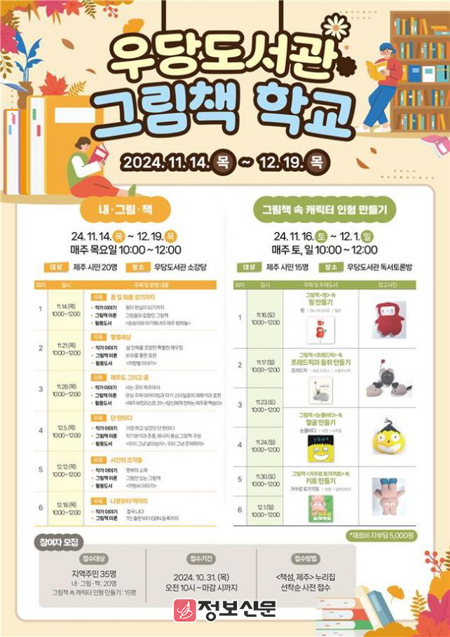 프로그램 참여를 희망하는 제주시민은 10월 31일부터 책섬 제주 누리집(http://woodang.jejusi.go.kr/)의 프로그램 사전신청란에서 신청하면 된다.