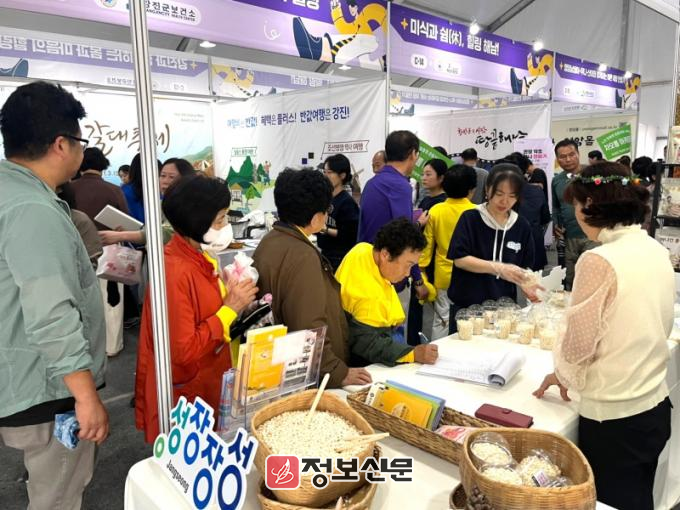 제품 뒷면에 ‘독도는 우리 땅’문구를 새겨 전국적으로 유명세를 떨친 장성지역 기업 ‘올바름’의 쌀과자 제품 시식에도 많은 발길이 모였다. 장성산 ‘K-푸드’ 미국 진출을 기념해 소포장 된 장성쌀도 제공했다. 인파가 집중되자 건강증진관에서 병행한 장성군 고향사랑기부제 홍보 역시 한층 활기를 띠었다.