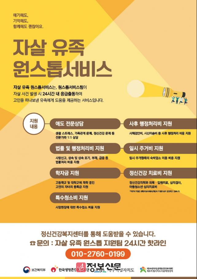 ![]() 제주특별자치도, 자살유족 원스톱 서비스 지원사업 진행 |