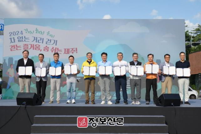 제주도와 제주도 범도민걷기실천추진협의회는 차 없는 거리 ‘걷는 즐거움, 숨 쉬는 제주!’ 행사에서 체결한 업무협약을 계기로 오는 11월 30일까지 64일간 나눔 걷기 운동을 추진 중이다.