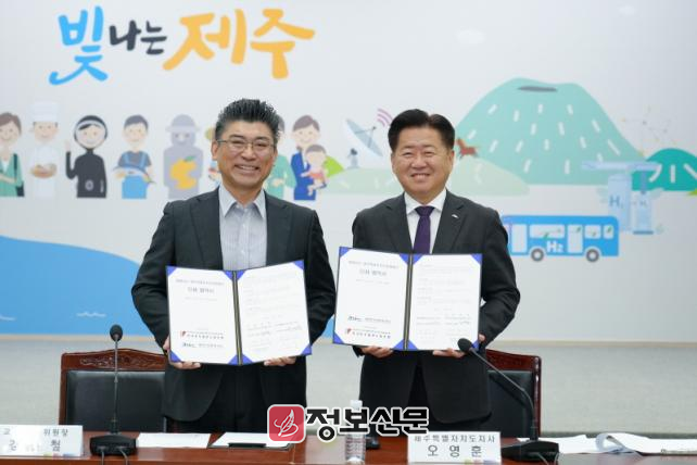 단체협약 체결식에는 노사 양측 대표 교섭위원인 오영훈 제주도지사, 김변철 전국민주일반노동조합 위원장을 비롯해 노조 측과 도·행정시 교섭위원 등이 참석했다.