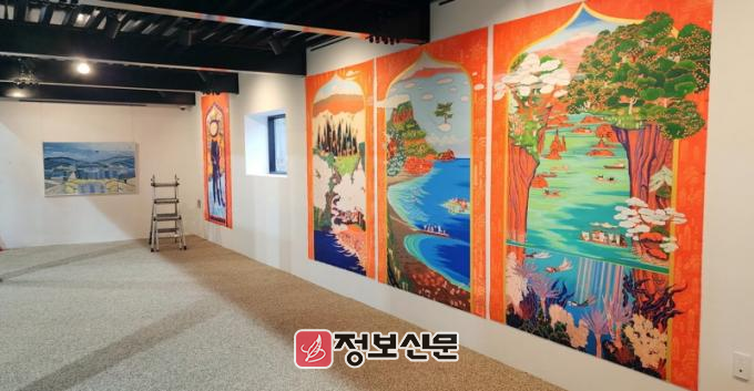 ![]() 나주시가 한국문화예술위원회가 주관하는 ‘2024년도 작은 미술관 조성 및 운영지원사업’에 선정돼 나주정미소 건물에 ‘나주작은미술관’을 개관했다. 사진은 미술관 개관전 포스터 및 미술관 내부 풍경. (사진제공-나주시) |