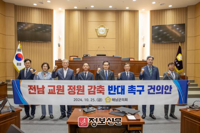 한편, 해남군의회 외에도 전남 학부모연합회에서 교원 정원 감축 반대 서명운동을 펼치고 있으며, 교육대학 및 교원단체 등에서도 교육부의 일방적인 감축 통보에 대한 반대 여론이 확산되고 있다.