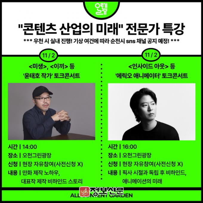 ![]() 순천시, 올텐가 특강 DAY K-레전드 윤태호 작가.픽사 출신 에릭오 감독 순천 온다 |