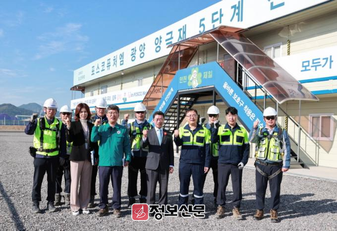 이날 정인화 시장이 첫 번째로 찾은 곳은 올해 6월 광양시와 대규모 투자협약을 체결한 포스코퓨처엠의 하이니켈 NCA 양극재 공장 설립 예정 부지다. 정 시장은 포스코퓨처엠 관계자와 만나 이차전지 분야에 대한 비전을 공유하며 상호 협력 의지를 다졌다.