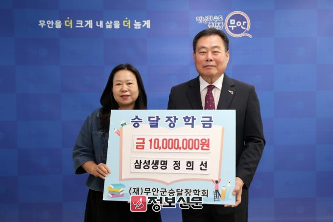 ![]() 삼성생명 정희선 설계사, 무안군 승달장학금 1,000만원 기탁 |