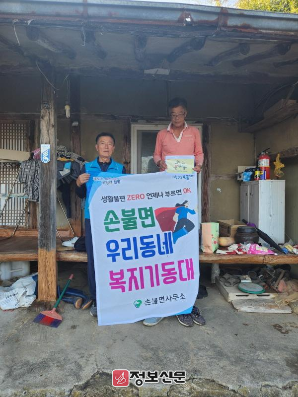 손불면 우리동네 복지기동대원과 손불면사무소 직원 등 10여 명의 봉사자들은 주거환경이 열악한 두 가구를 방문하여, 낡은 방충망을 교체하고 고장난 보일러를 수리했다. 아울러, 주택 주변에 쌓인 쓰레기를 정리하며 주택의 안전과 쾌적함을 되찾기 위해 구슬땀을 흘렸다.