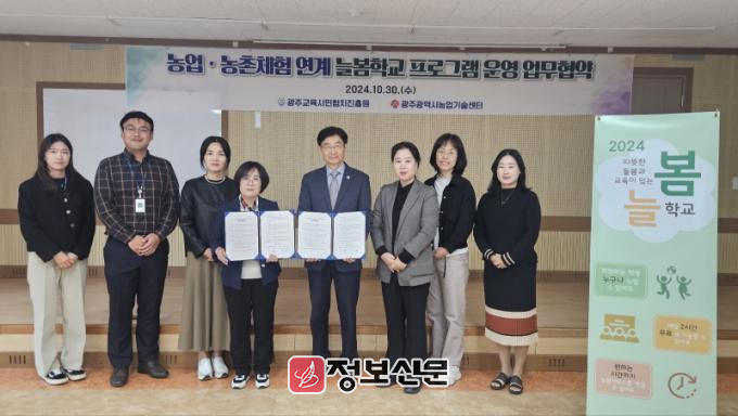 협약에 따라 광주농업기술센터는 내년부터 초등학교 2개교에서 늘봄학교 초등 1~2학년 맞춤형 농업·농촌체험 프로그램을 시범 운영한다.