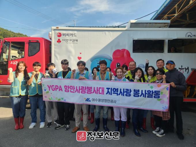![]() YGPA 항만사랑 봉사대가 30일 여수시 화양면 화동마을에서 ‘행복 듬뿍! 사랑 두배! 추억의 짜장나눔’ 행사에 참여하여 기념촬영을 하고 있다.