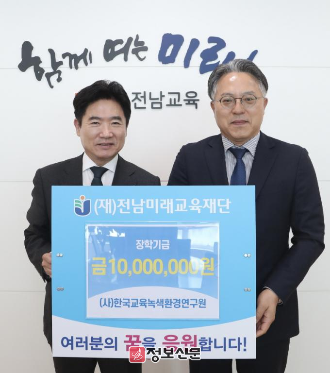 (재)전남미래교육재단 이길훈 원장은 “지속적으로 전남 교육에 관심을 갖고 장학금을 기탁해 주시는 한국교육녹색환경연구원에 진심으로 감사드린다.”며 “전남 학생들의 무한한 가능성을 지원하고 응원하는 데 소중히 사용하겠다고.”고 말했다.