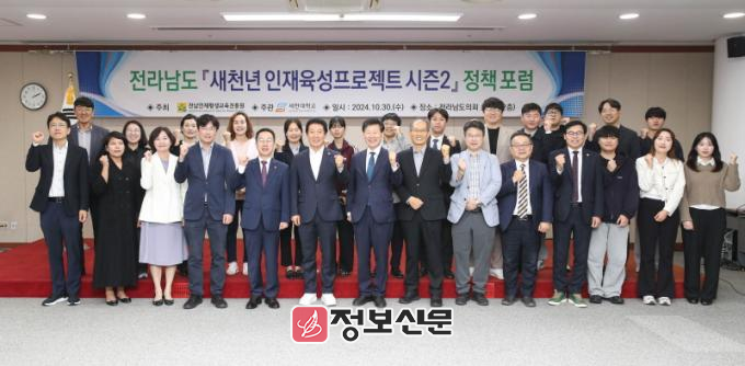 ![]() 전라남도의회 초의실에서 ‘새천년 인재육성프로젝트 시즌2 정책 포럼’이 개최되었다. |