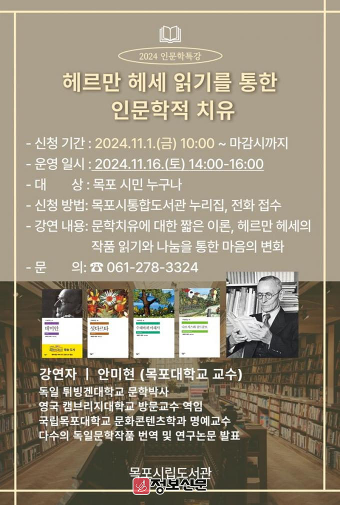 ![]() 목포시립도서관, ‘헤르만 헤세 읽기 통한 인문학적 치유’강연 진행 |