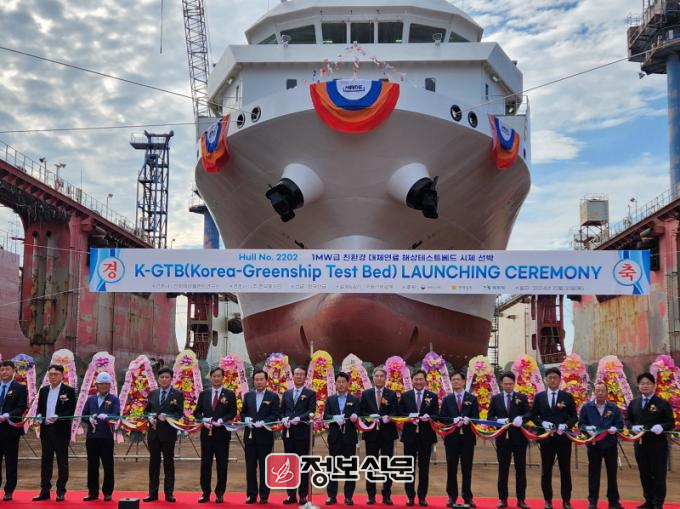 진수식은 새로 만든 선박을 처음으로 물에 띄우는 행사다. 이날 친환경 선박 연료추진시스템 실증선이 공식적인 첫 항해를 알리며 대한민국 친환경 선박 산업의 새로운 장을 열었다.