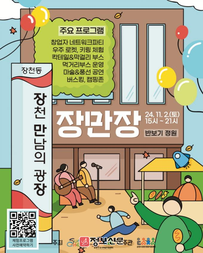 이번 행사는 장천동 도시재생 권역 내 창업자를 포함한 순천 터미널 주변의 신규 및 예비 창업자, 장천남제마을관리사회적 협동조합이 창업 네트워크와 공동체 의식 활성화를 위해 직접 행사 기획 및 운영에 참여한다.