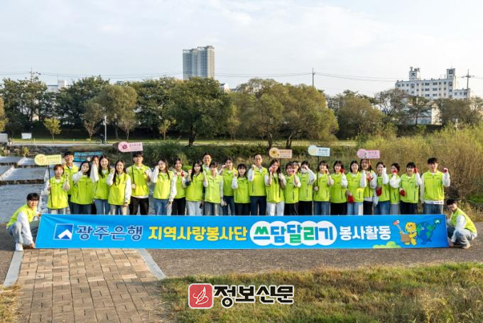 이날은 광주은행 대학생 홍보대사가 소속된 30여명의 광주은행 지역사랑봉사단이 광주천변 시민 산책로를 달리며 환경 정화 활동을 실시했으며, 지역 주민과의