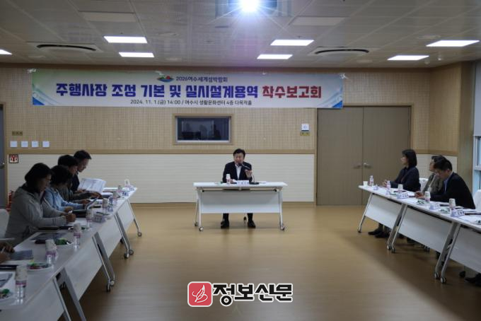정기명 여수시장과 조직위 관계자들은 참석한 전문가로부터 공간구성, 동선 및 주차계획 등에 대하여 다양한 의견을 듣는 시간을 가졌다.