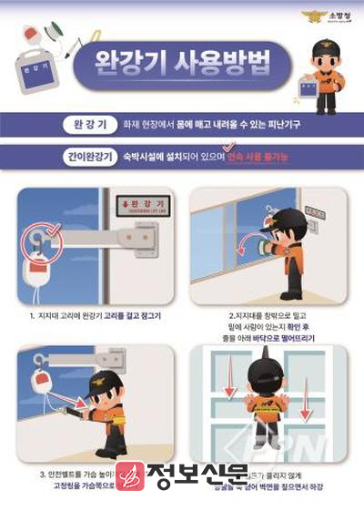 정강옥 서장은 “비상 상황에 당황하지 않고 대피할 수 있게끔 완강기 사용법을 미리 숙지하는 게 중요하다”라며 “국민들이 피난설비의 중요성과 사용법을 잘 알 수 있도록 홍보와 교육을 지속하겠다”라고 전했다.