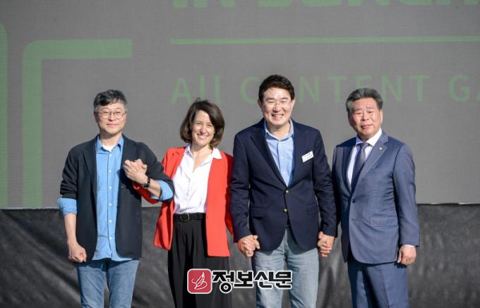![]() 순천시, 글로벌 웹툰 기업 케나즈.오노코리아 유치협약 체결(순천시 2024 글로벌 콘텐츠 페스티벌 in 순천에서 케나즈·오노코리아 두 기업의 순천 이전발표 기념행사를 갖고 기념사진을 찍고 있다) |