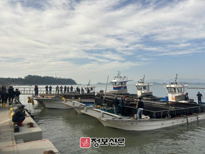 이날 위판에는 4개 어가에서 참여해 298포대(120kg기준), 총 35.7톤을 위판한 가운데 가격은 지난해보다 다소 오른 포대당 35~45만원 선에 거래되었다. 이에따라 역대 최대 위판액 1,138억원을 기록한 지난해에 이어 2025년산도 높은 수익을 기대하고 있다.