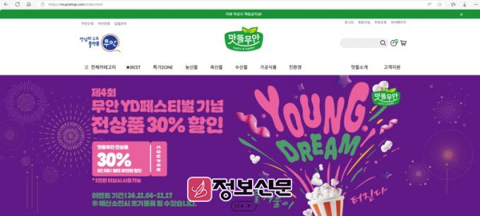 ![]() 무안군 맛뜰무안몰, 무안 YD페스티벌기간 전 상품 할인이벤트 진행 |
