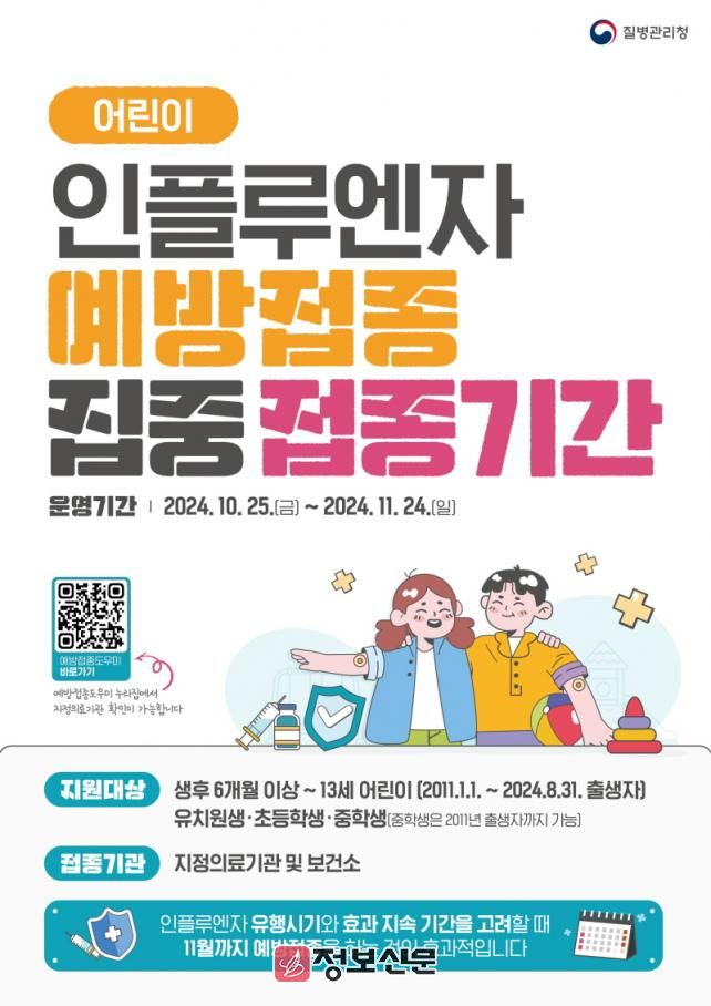 ![]() 전북특별자치도, 어린이 인플루엔자 예방접종 집중접종기간 운영 |