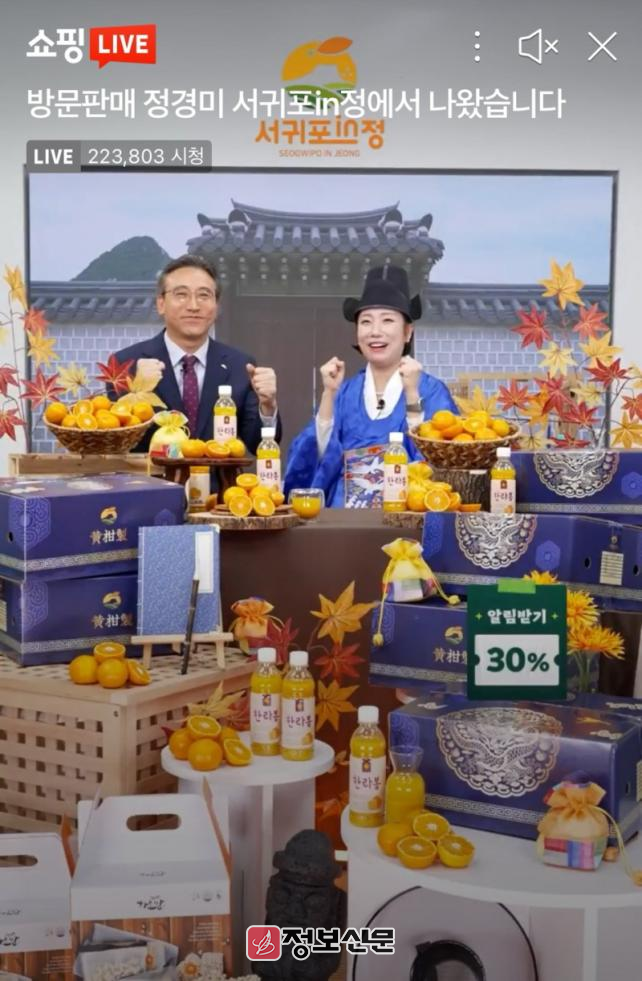 이날 서귀포in정의 황감제 라이브커머스는 31만명 이상이 시청하며 큰 호응을 얻었고, 기획전의 실시간 매출은 2억 3백만원을 기록했다. 매출은 방송을 통한 서귀포in정 접속 후 구매와 할인쿠폰 유효기간이 10일인 점을 고려하면 향후 매출은 더 오를 것으로 판단하고 있다.