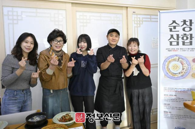 미슐랭 1스타 유현수셰프와 협업으로 탄생한‘순창삼합’은 고추장을 활용해 매콤달콤하게 조리한 장어구이, 잘 숙성된 간장의 감칠맛이 배어든 간장김치, 그리고 구수한 청국장 향이 어우러진 담백한 수육까지 순창의 3대 장으로 구성된 특화 음식이다.