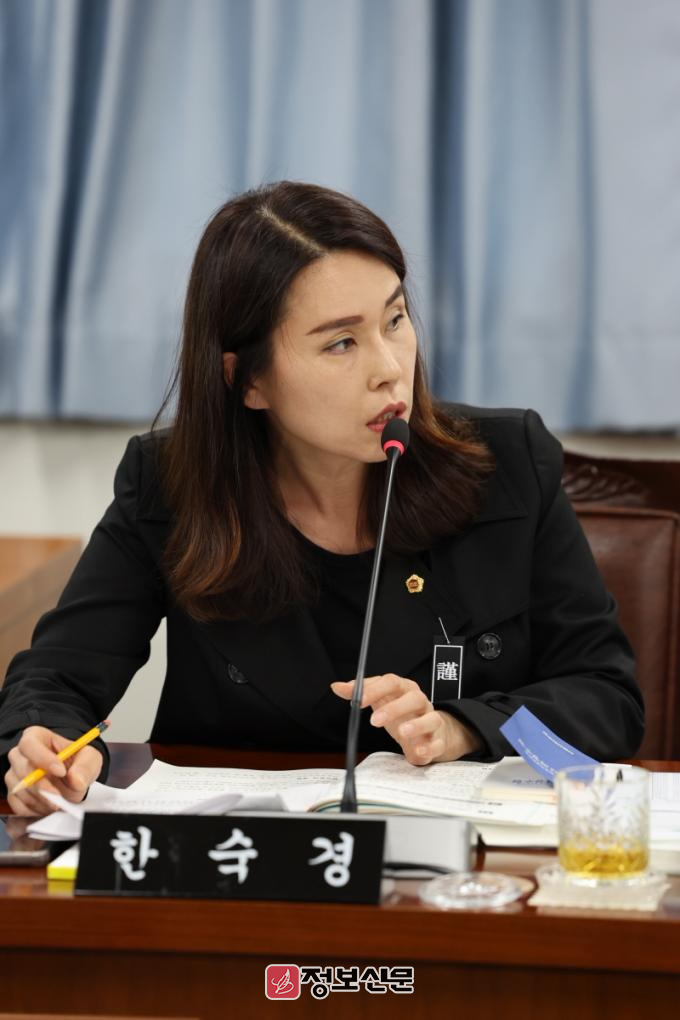전남도의회 한숙경 의원(더불어민주당ㆍ순천7)은 11월 5일 열린 전남도 환경산림국 행정사무감사에서 현재 10~20% 수준인 위원회 여성 참여율을 40%로 확대할 것을 주문했다.