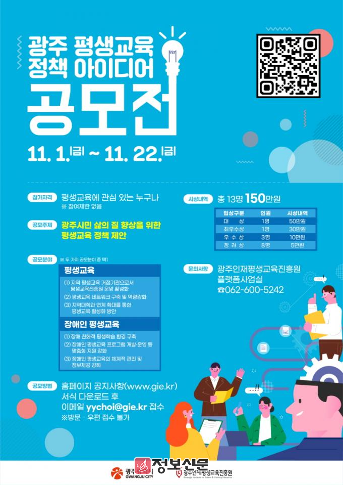 ![]() 광주인재평생교육진흥원, 광주 평생교육 정책 아이디어 공모전 개최 |