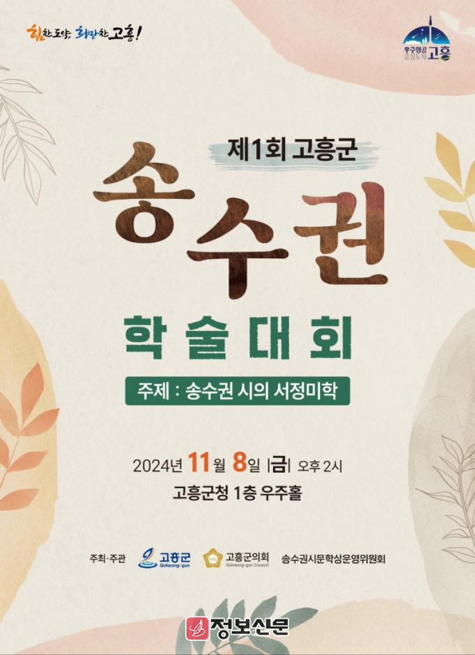 군 관계자는 “송수권 시인은 고흥뿐 아니라 우리나라 문학계의 귀중한 문화자원임에도 그동안 그의 문학적 가치가 제대로 평가받지 못했다”며 “이번 학술대회를 시작으로 송수권 선생의 문학적 업적을 꾸준히 연구하고, 그 문학 정신을 기려 한국문학 발전과 지역문화 저변 확대를 위해 노력하겠다”고 말했다.
