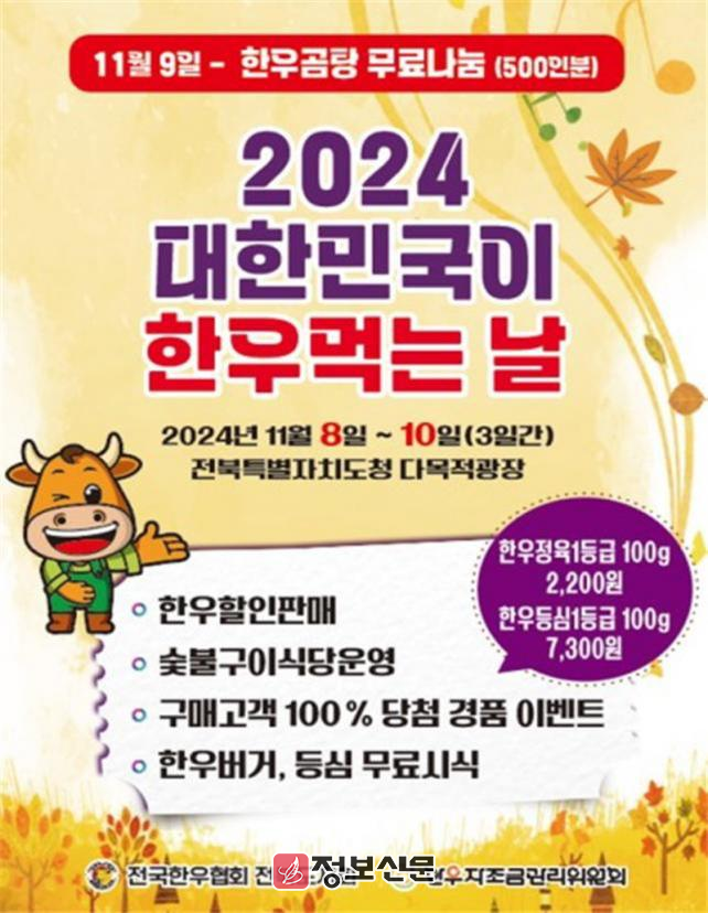 이 행사는 (사)전국한우협회 전북도지회와 한우자조금관리위원회의 주관으로 진행되며, 한우 농가의 어려움을 해소하고 한우 소비 문화를 확대하기 위해 마련됐다.
