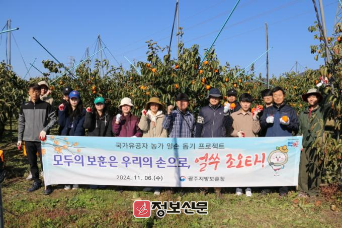 이번 농가 일손돕기는 국가보훈부 ‘모두의 보훈’ 사업의 일환으로 광주지방보훈청 직원 15여명이 대봉감 농사를 짓는 국가유공자 농가를 찾아 수확과 분류 작업, 주변정리에 구슬땀을 흘렸다.
