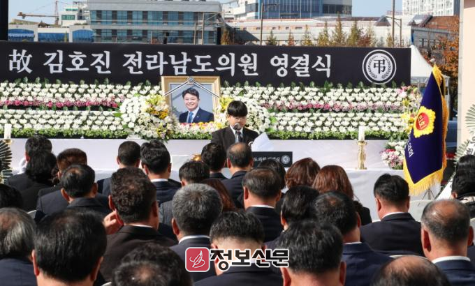 이어 “고 김호진 의원님이 보여주셨던 지역발전에 대한 열망과 의지, 도민에 대한 헌신을 가슴속에 새겨 오래도록 기억할 것이다.”며 “의원님이 밟아오신 의정의 곧은 길이 끝까지 잘 완성될 수 있도록 전라남도의회 또한 지혜와 역량을 모아나가겠다.”며 고인의 뜻을 기렸다.