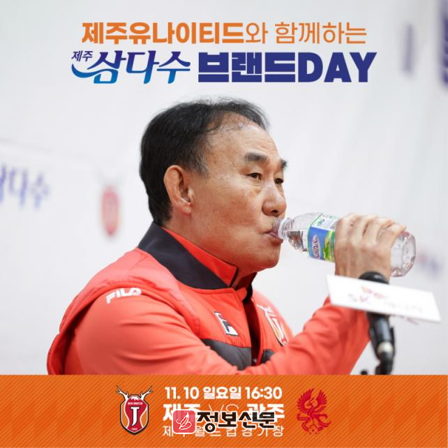 제주는 10월 10일(일) 오후 4시30분 제주월드컵경기장에서 열리는 광주FC와의 하나은행 K리그1 2024 37라운드 홈 최종전을 '제주유나이티드와 함께하는 삼다수 브랜드 DAY'로 개최한다. 제주는 홈 경기 개최 시 후원사와 팬이 하나되는 브랜드 데이를 개최하고 있다.