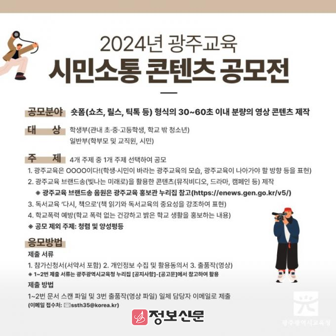 ![]() 광주시교육청, 2024 광주교육 시민소통 콘텐츠 공모전 실시 |