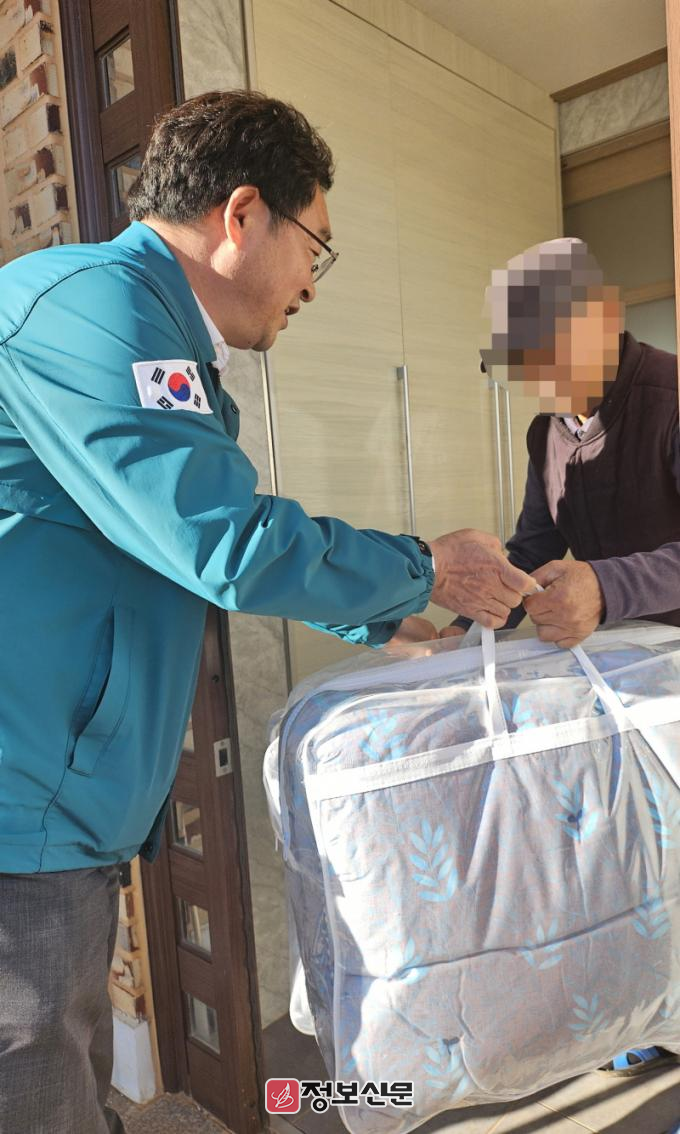 이불 세트를 전달받은 어르신은 “이렇게 직접 찾아와서 안부를 살피고 겨울 이불까지 주시니 너무 고맙다”고 말했다.