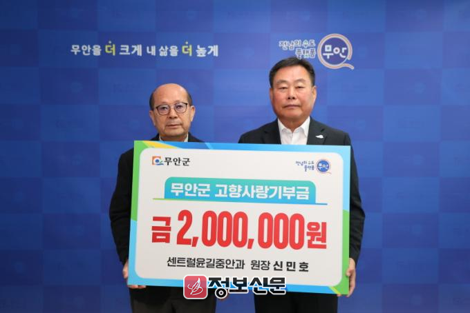![]() 센트럴윤길중안과 신민호 원장, 무안군에 고향사랑기부금 200만원 기탁 |