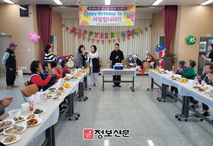 행사는 오전부터 시작되어 식사와 함께 난타·사물놀이 축하공연, 선물 증정 등이 이어져 훈훈한 분위기를 더했다. 협의회 회원들은 정성스럽게 준비한 생일케이크와 음식을 나누고 선물을 전달해 어르신들에게 큰 감동을 선사했다.