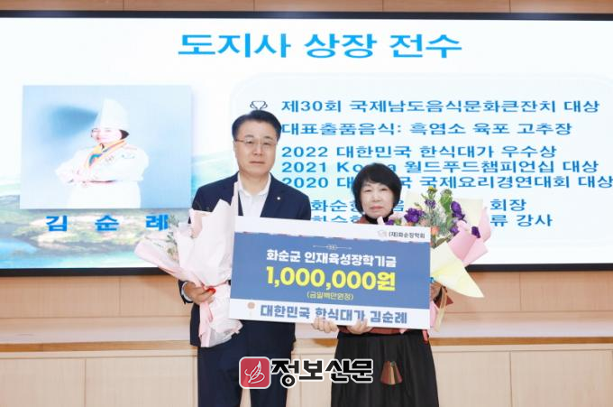 ![]() 김순례 한식 대가, 화순장학회에 장학금 100만 원 기탁 |